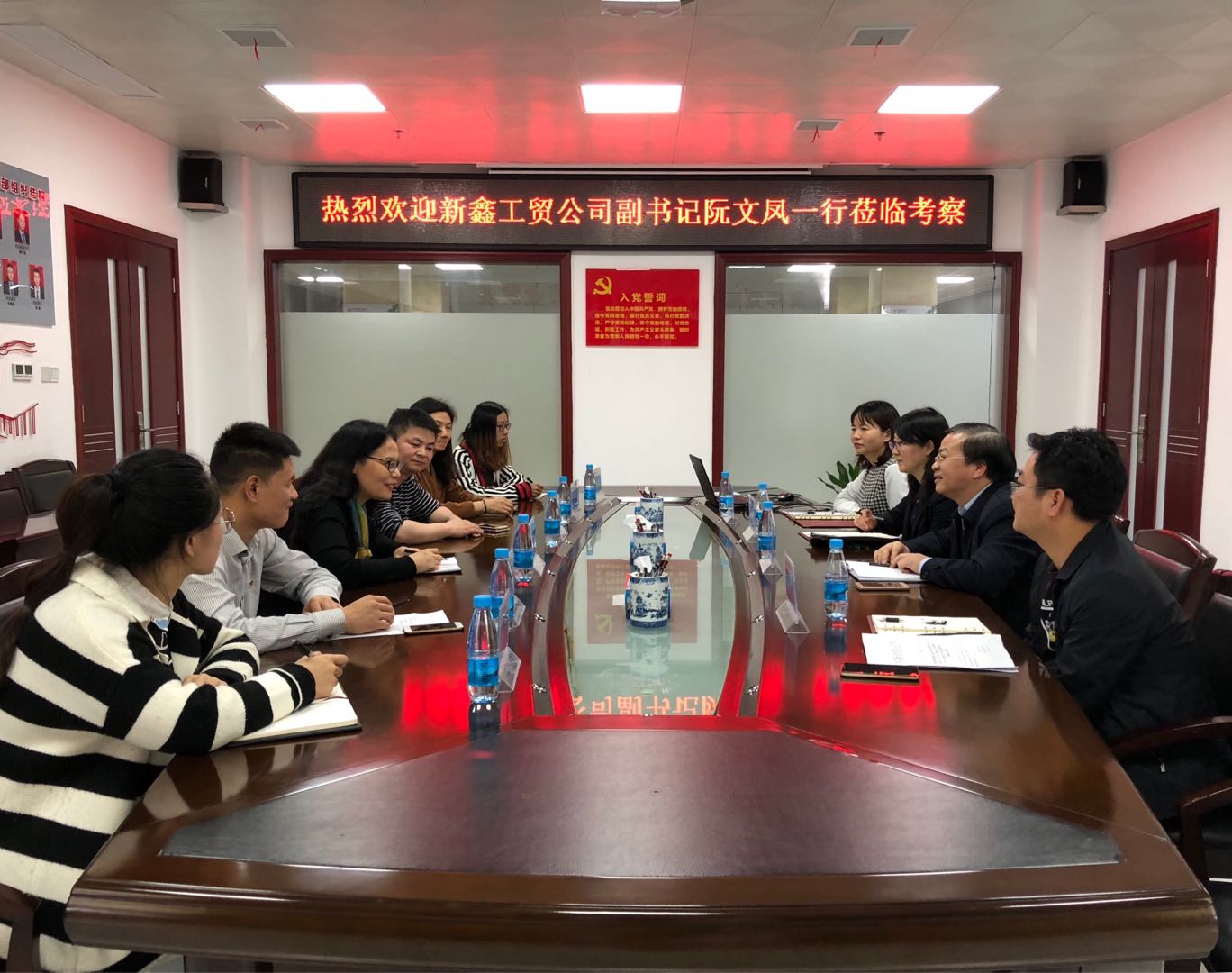 為加強(qiáng)企業(yè)之間的合作交流,3月28日,新鑫工貿(mào)公司黨支部副書(shū)記、工會(huì)主席阮文鳳一行蒞臨我公司考察,公司副總經(jīng)理、工會(huì)主席鐘秋生及相關(guān)部門負(fù)責(zé)人陪同交流座談。雙方主要就黨的建設(shè)、工會(huì)建設(shè)、檔案管理、績(jī)效考核等方面的工作進(jìn)行了深入探討。會(huì)后,阮文鳳一行重點(diǎn)對(duì)我公司黨建基礎(chǔ)工作、檔案規(guī)范化管理進(jìn)行了現(xiàn)場(chǎng)觀摩。